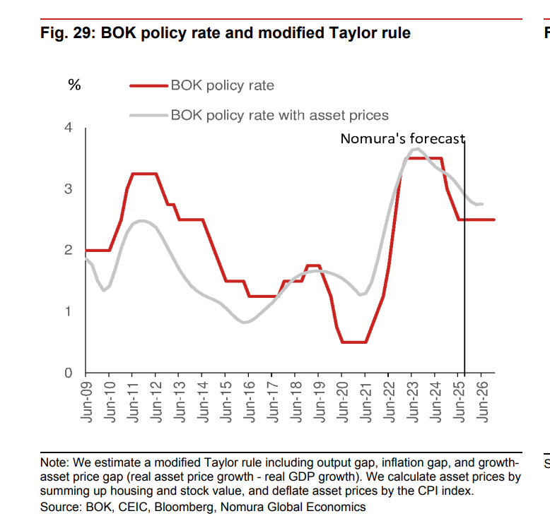 在此背景下,韩国央行(BOK)陷入了两难:经济增长强劲且资产价格飙升,使其失去了进一步降息的空间。